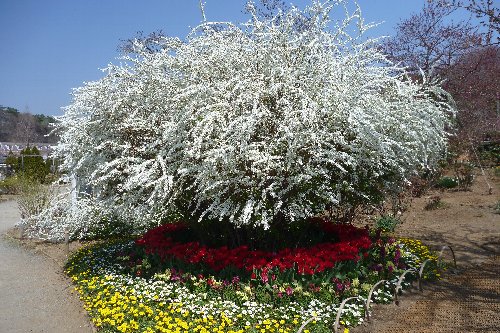 フラワーパークのユキヤナギは高さが2m程もあるのですが、そよかぜに揺れる花は本当に綺麗です。