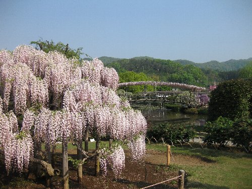 さくら色の藤(うす紅藤)が見頃を迎えて園内はさくら色にやさしく染めあげられました。