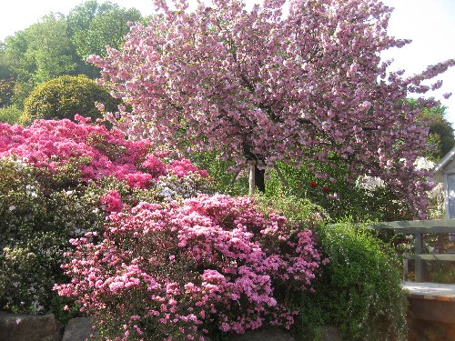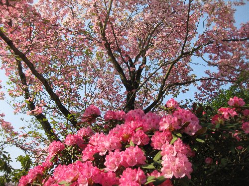 さくら色の藤でも桜でもなく、これはハナミズキ(下はシャクナゲ)