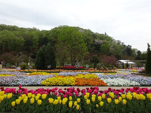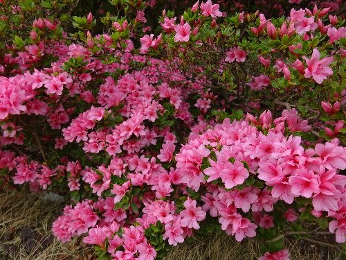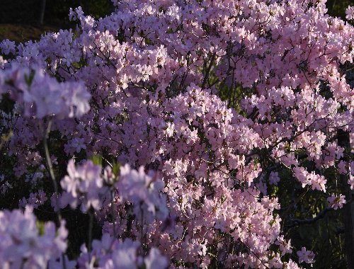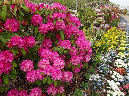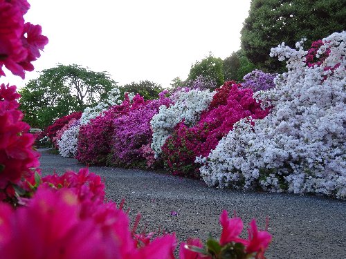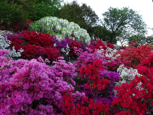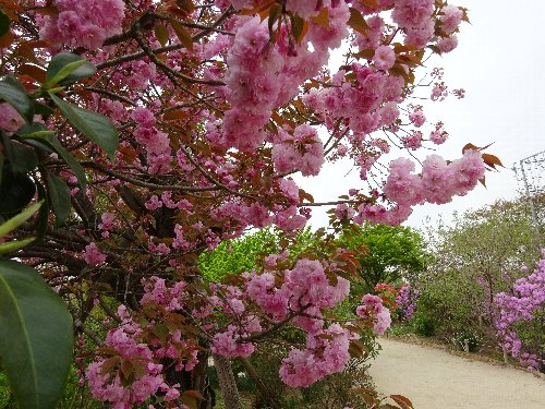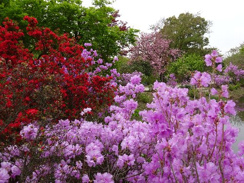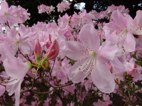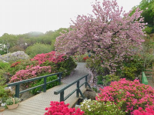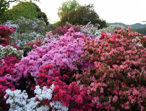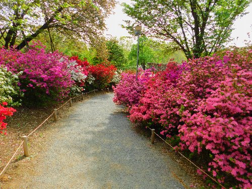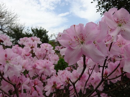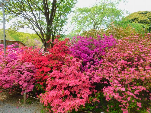 ツツジが満開を迎えています。山側にあるツツジの海エリアには大木も多く、ツツジの大波が押し寄せてきているように見えます。