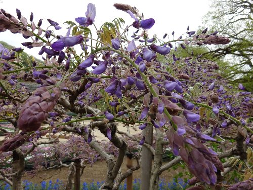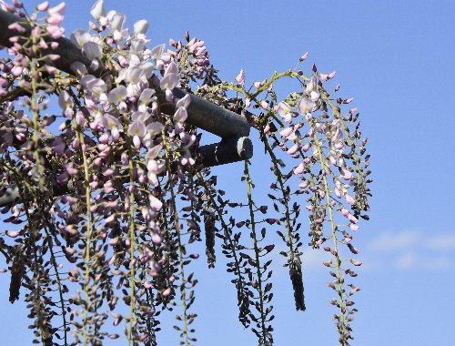 こちらは大長藤。花房が100㎝を超えてきました!花房は咲きながら長くなるので、まだこれからも長くなります。ただ、一番長くなるのは一番幹に近い所で、幹から離れるほど短くなってきます。