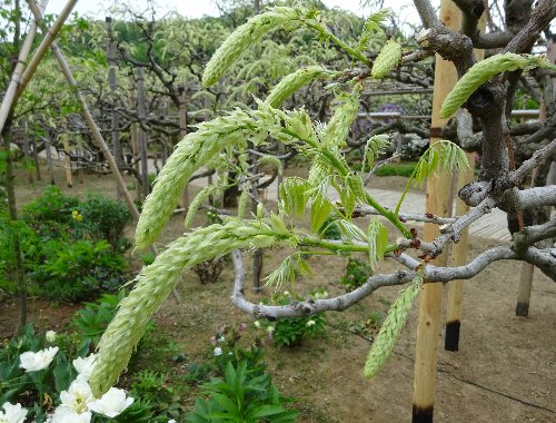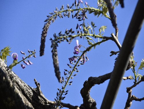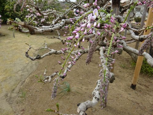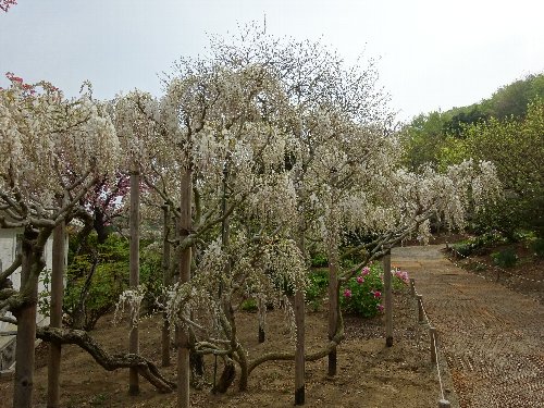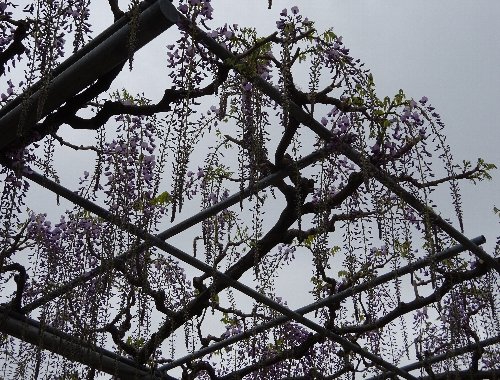 マロニエの裏にあるむらさき藤の棚は見返り美人と呼ばれています。幹のうねりがなんとも女性的だと思いませんか。