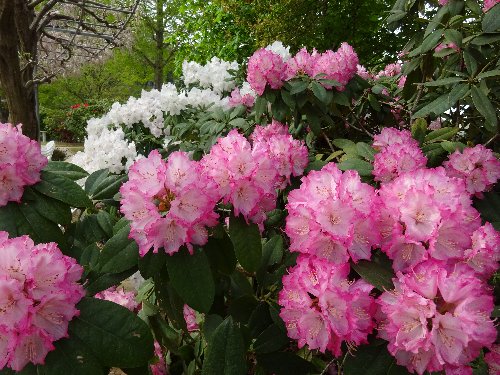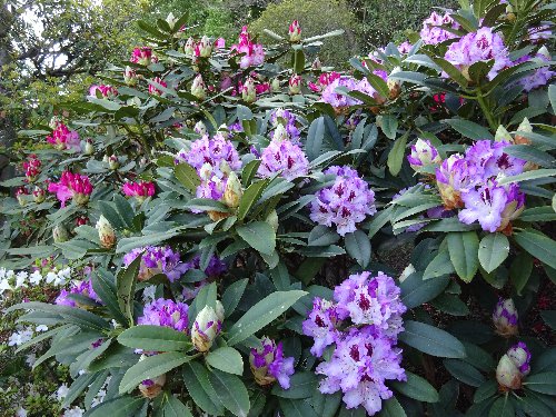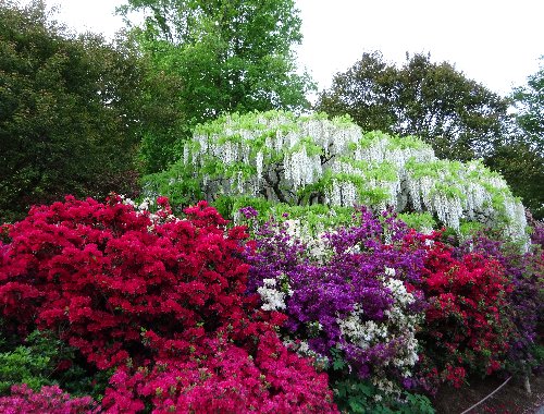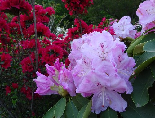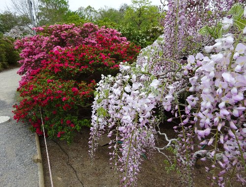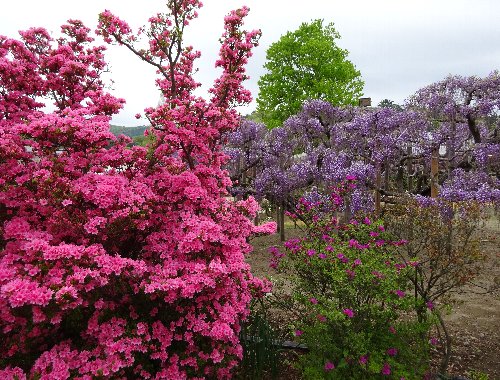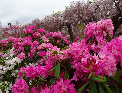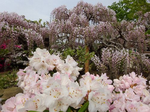 中咲きのシャクナゲが咲き出してきました。さくら色の藤との共演もお楽しみ頂けますよ!