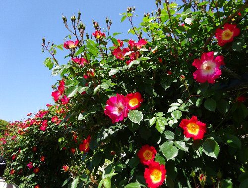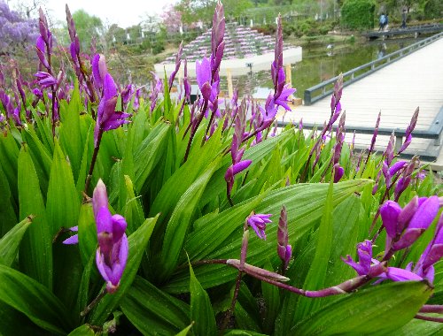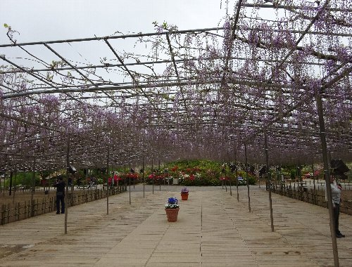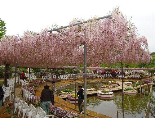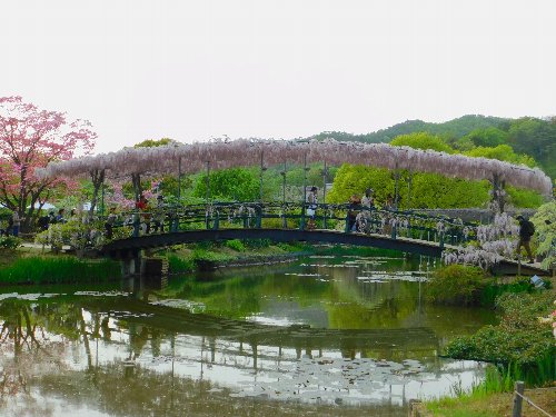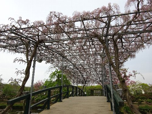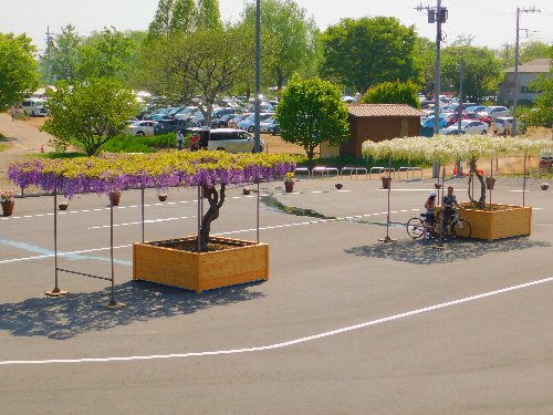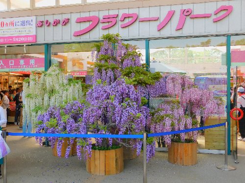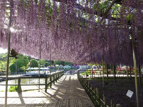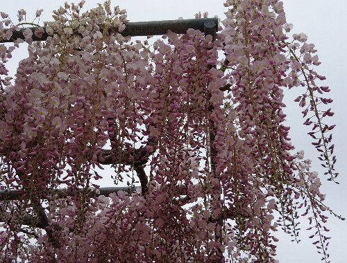 正面ゲートでも3色の藤が皆様をお待ちしています。園内の様子はというと・・・