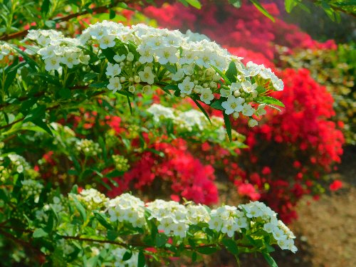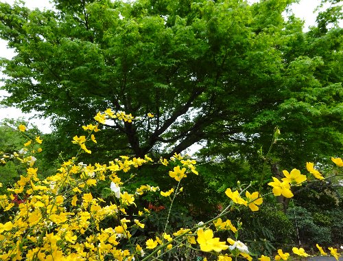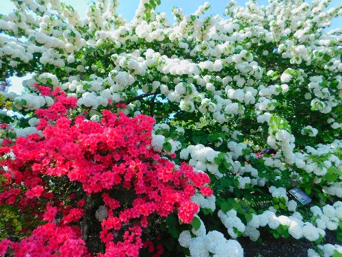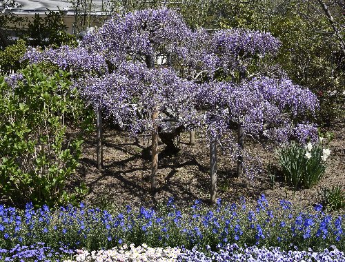 庭木仕立ての白藤は他の植物との共演も得意です。