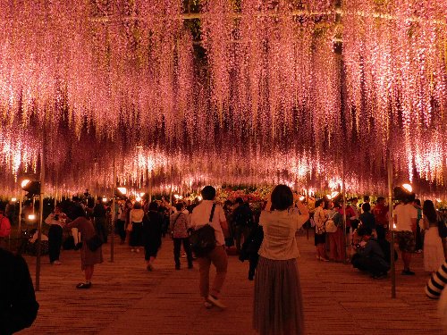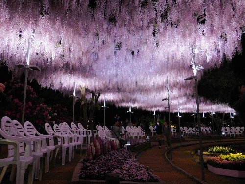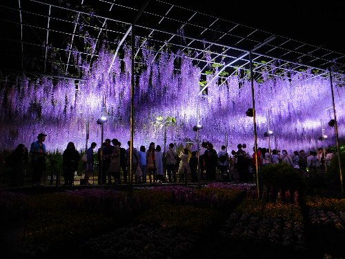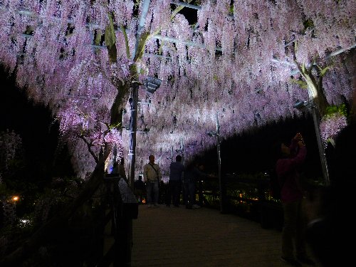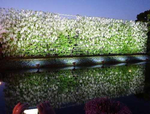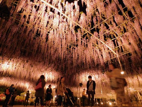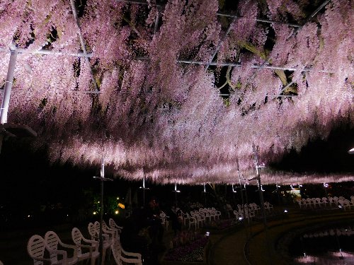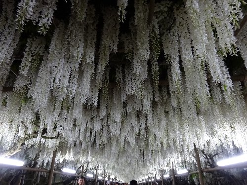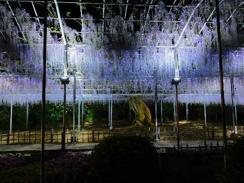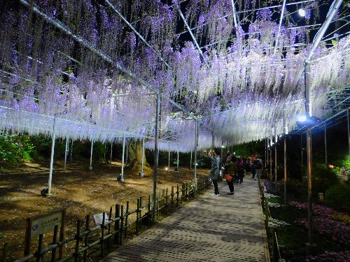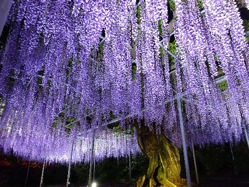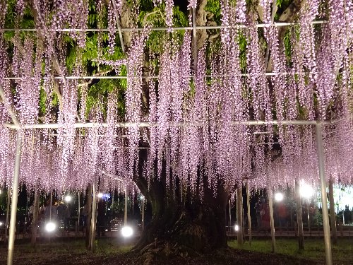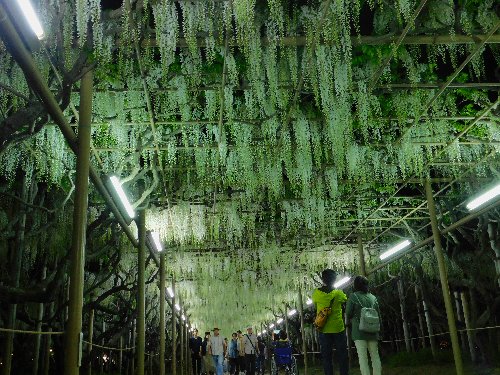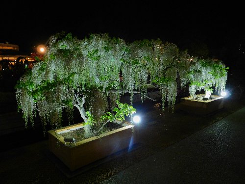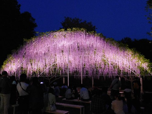 白藤のトンネル。夜の園内はまったりとした雰囲気が漂っていて、ゆっくり散策することが出来るのでおすすめです♪