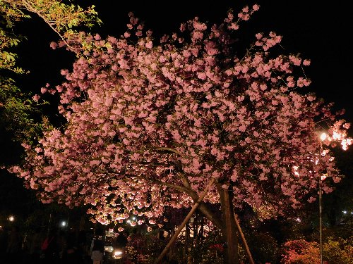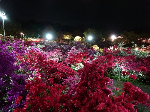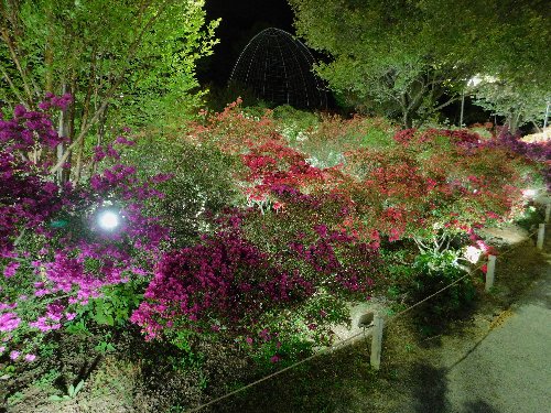 ツツジもライトアップされ夜を艶やかに彩っています。