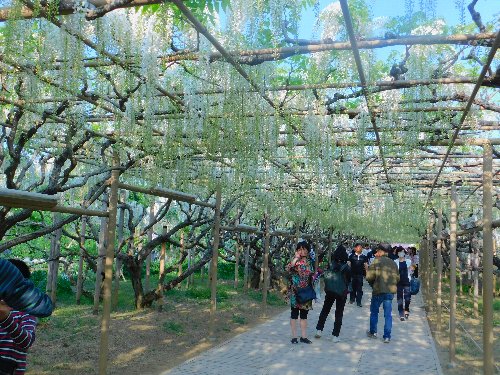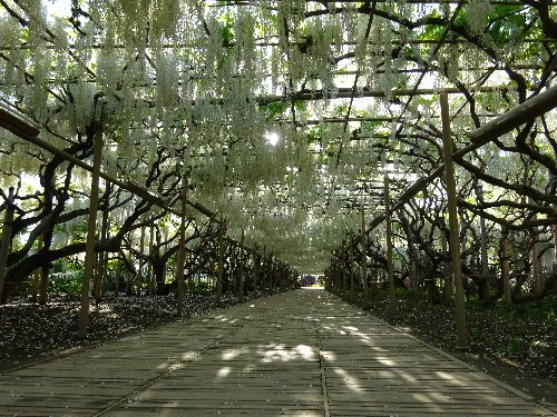80m続く白藤のトンネル。トンネルの中に閉じ込められた白藤の香りを、心いくまで楽しんでいただけたらと思います。