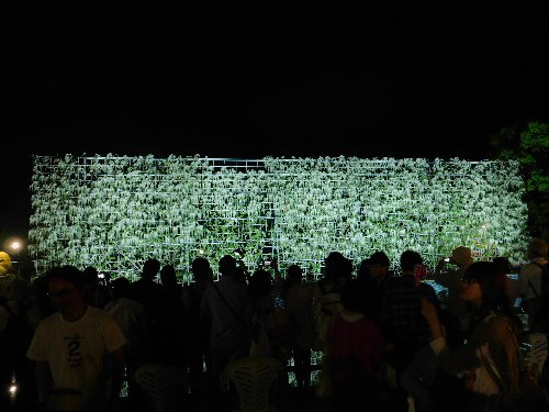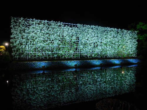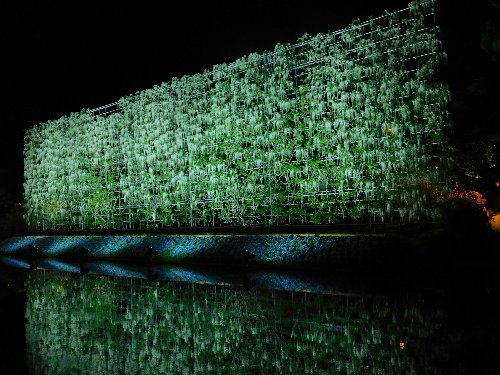 今年ライトアップをリニューアルしたむらさき藤の棚。爽やかな夜風を感じられる場所になった気がします。