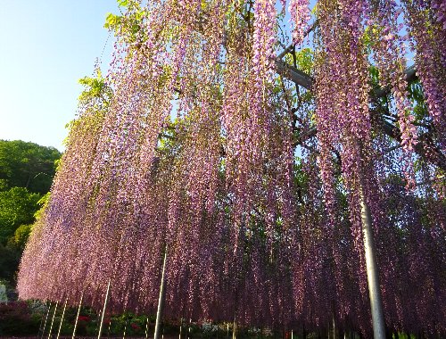 今年も美しい藤が咲いてくれました。いつもよりだいぶ早い開花となったため、一番美しい時に多くのお客様に来ていただけるように情報発信してきました。今が一番美しい園内です。一年間この時のために、スタッフが大切に育ててきた藤をはじめとする、たくさんの花々を皆様に見ていただけたら幸いです。そして、美しい花を見て皆様が幸せな気持ちになってくれたら、これに勝るものはないかと思います。