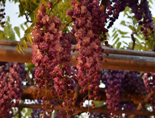 こちらも見頃の八重黒龍藤!光の当たり具合で花の色が違います。