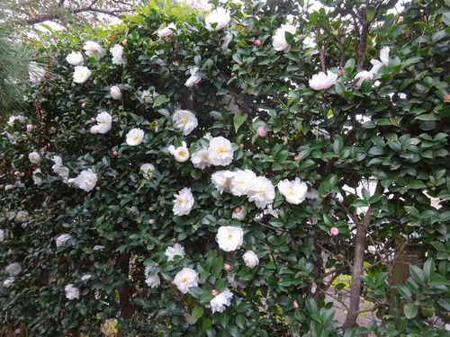 手前の花壇にはハボタンやエリカ、シロタエギクなどで彩られています。