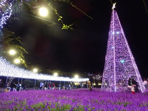 メタセコイヤ下のハート花壇も夜になるとライトアップ♡