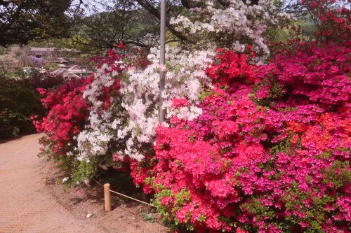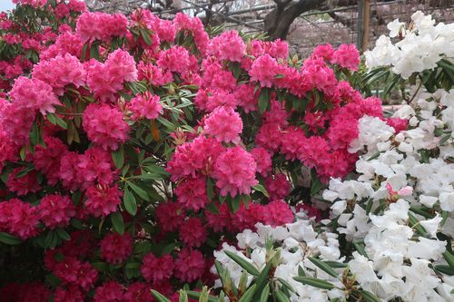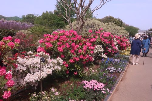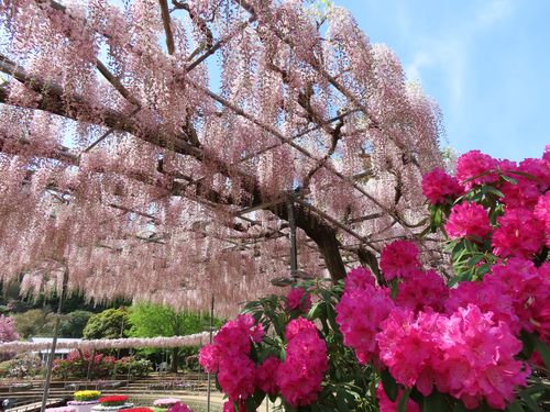淡い色合いの多い藤と鮮やかな色合いのツツジは開花期も揃い相性が良いです。