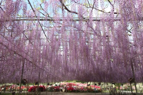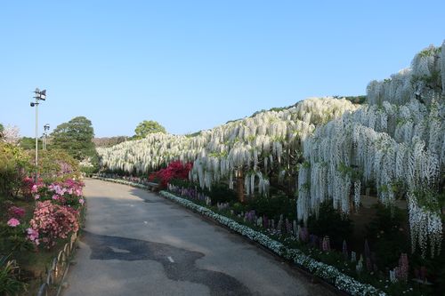 白藤トンネルの外側です。外側もゴージャスですね!ぜひご覧ください。