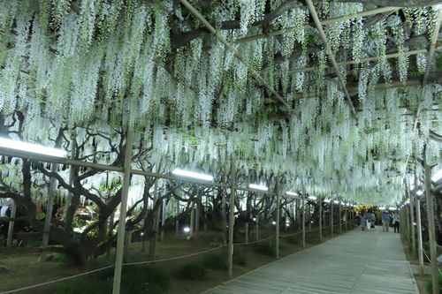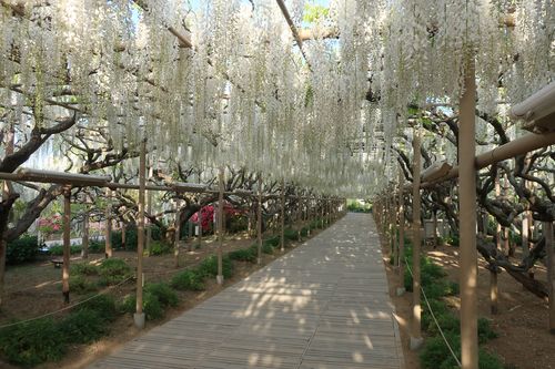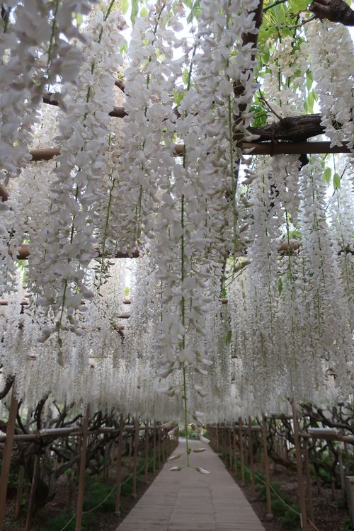 白藤のトンネルです。藤に囲まれ歩く道、どこへと導いてくれるのでしょうか。そして白藤は他の藤より香り高く気品に満ち溢れています。