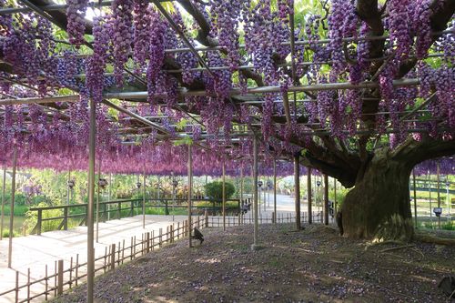 大藤が見頃を迎え、園内はたくさんのお客様で賑わっております。