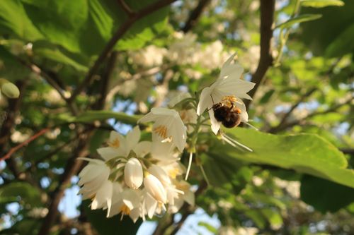 白藤が見頃の時期には合わせて白い花木が見頃を迎えます。