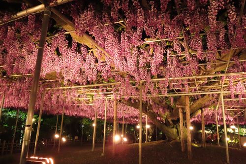 ライトアップされた藤も清らかで美しいです。昼と夜とで違う表情を見せてくれるのも藤の魅力ですね!