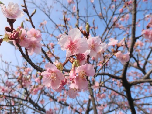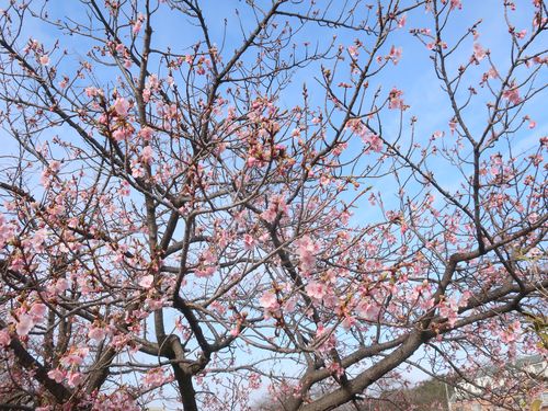 正面ゲート駐車場のカワヅザクラが咲きました!