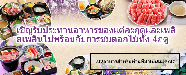 "เชิญรับประทานอาหารของแต่ละฤดูและเพลิดเพลินไปพร้อมกับสวนดอกไม้ทั้ง 4ฤดู."