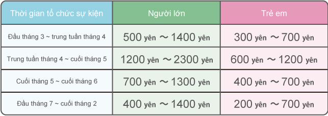 Hãy liên hệ với chúng tôi để biết thêm thông tin chi tiết về thời gian tổ chức và phí vào cổng, v.v... Có thể sẽ khác nhau tùy vào cách hoa nở.