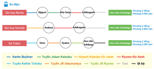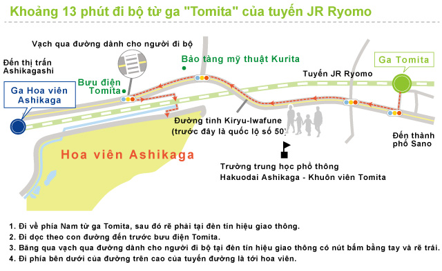 Hãy sử dụng ga "Ashikaga Flower Park" của tuyến JR Ryomo.