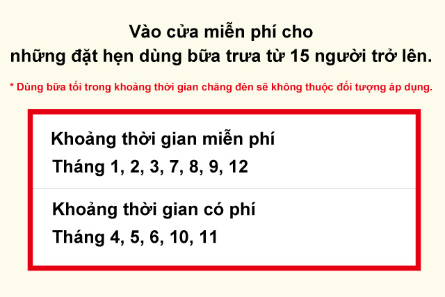 Ngoại trừ khoảng thời gian từ 1/4~10/6 và dùng cơm vào buổi tối.