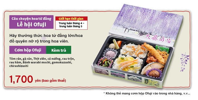 Không tiếp nhận đặt trước trong khoảng thời gian "Câu chuyện hoa tử đằng" từ trung tuần tháng 4 ~ trung tuần tháng 5 và dùng cơm vào buổi tối. Vui lòng liên hệ với chúng tôi để biết thêm chi tiết.