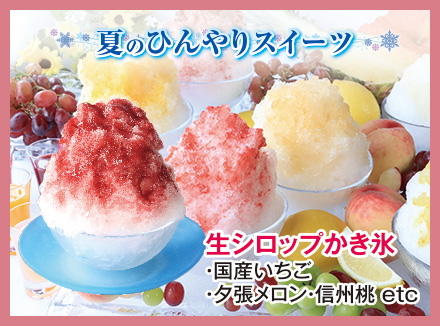 藤とバラをイメージした 2 つのフレーバー。どちらも世界中でここだけしか味わうことのできない、特別な コールドストーン。真夏に大人気のかき氷も、ひとくち食べると果汁と香りが広がる生シロップで新登場!!