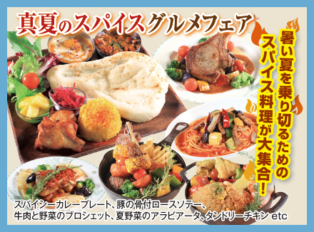 ブロシェットや骨付きロースソテーなど、真夏にぴったりのスパイスグルメをご用意しました。 スパイスが苦手な方には「生そうめん」がお勧め!日持ちしない為、見かける事が少ないですが生麺ならではのモチモチ食感に感動です!