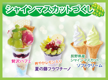 ゼリーの中にフルーツなどを入れた香港スイーツ「九龍球(クーロンキュウ)」 カラフルで涼しげな見た目にうっとり。旬のシャインマスカットを贅沢に使用したパフェや当園限定の藤フラワチーノもおすすめ!!